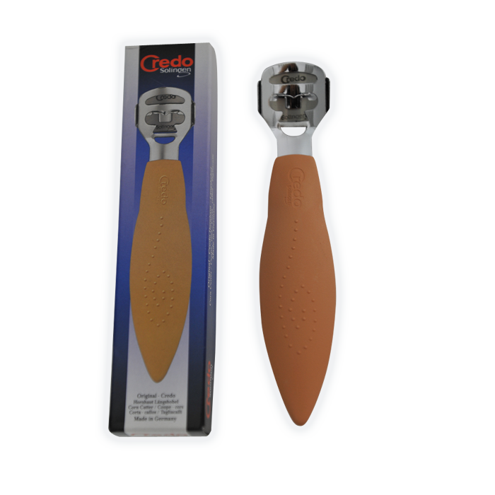 ידית גרדו מנירוסטה לסכין גרדו להסרת יבלות ועור יבש\קשה, אל חלד, מגיע עם ראש פומפיה להחלקת עור כף הרגל.
